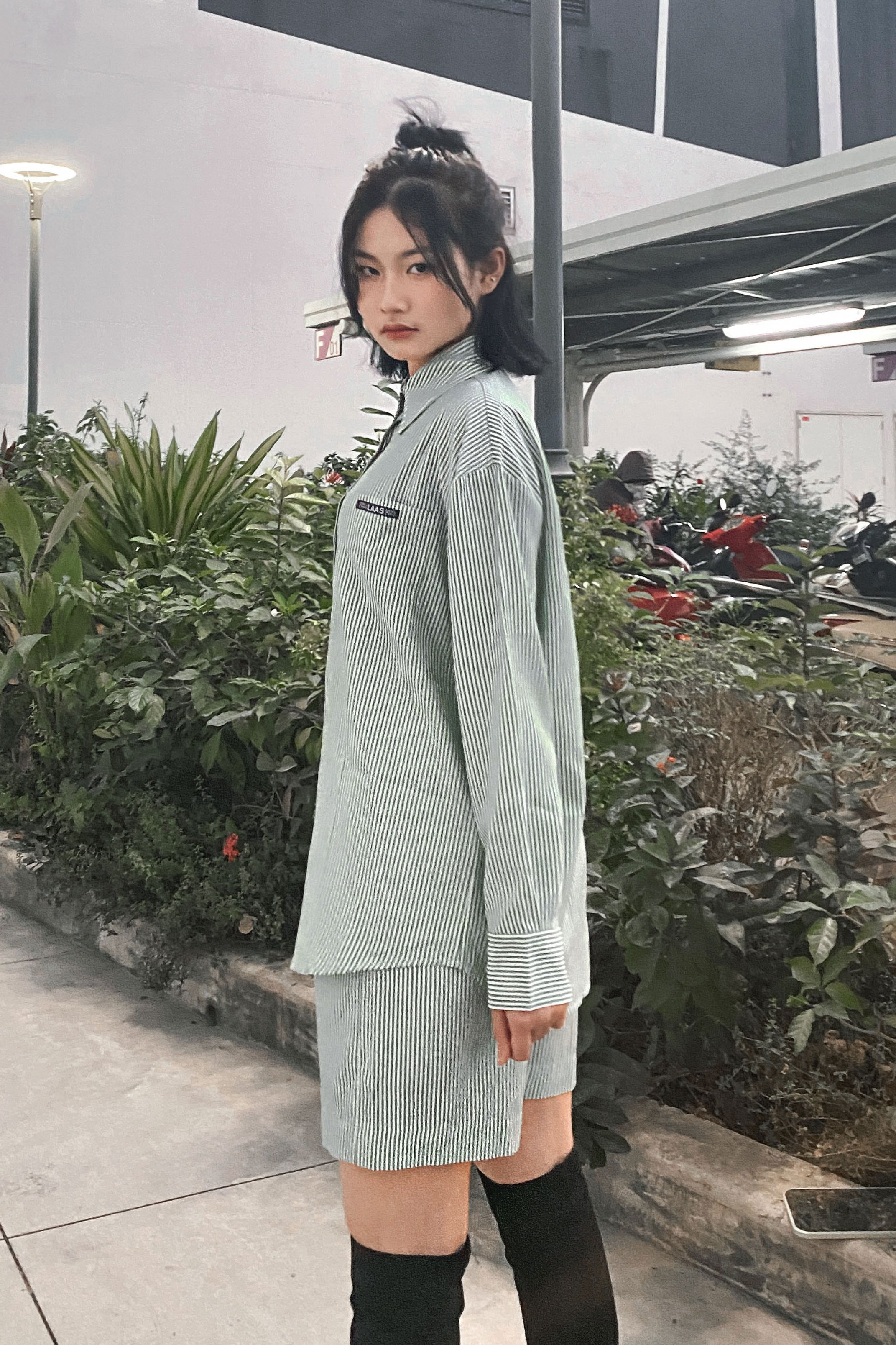 CHẤT SOMI COTTON PHA, ÍT NHĂN, MỀM ĐỨNG PHOM SET MÀU XANH LÁ, HOẠ TIẾT SỌC XANH TRẮNG SET PHOM RỘNG THOẢI MÁI, CÁ TÍNH ÁO SOMI PHOM RỘNG, CÓ TÚI TO BÊN NGỰC TRÁI