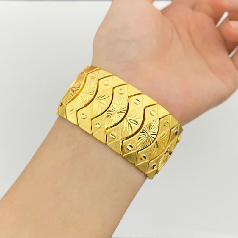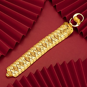 Mua tại TiktokChất liệu: hợp kim đồng mạ 24k tạo độ sáng bóng. Sở hữu công nghệ mạ tĩnh điện mang lại độ bền cao cho sản phẩm Chiều rộng mặt dây 3.0 cm kết hợp độ dày 0.3 cm hoa văn được đúc tinh xảo, sắc nét Chu vi tối đa của sản phẩm dài 22 cm các mắt được nối với nhau thông minh có thể tháo ráp 1 cách dễ dàng giúp bạn có thể điều chỉnh cho phù hợp với size tay của bản thân Khóa cài tỳ hưu đặc biệt linh động dễ dàng sử dụng