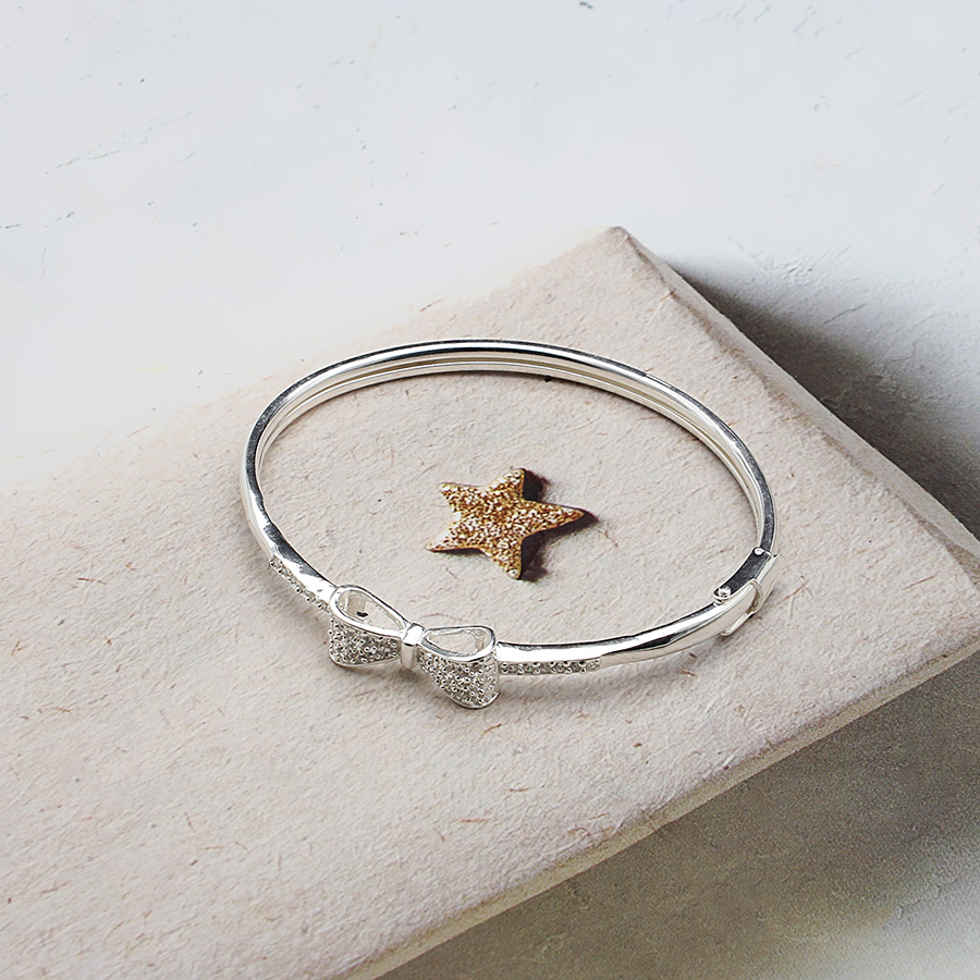 Vòng Tay, Lắc Tay Nữ Dạng Kiềng Đính Nơ Xinh Bạc Thật 925 Chính Hãng BẠC HIỂU MINH LTU535