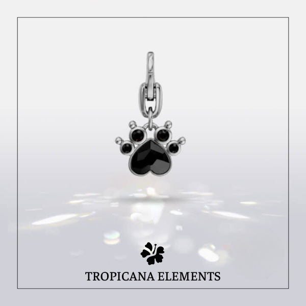 1 x Mặt dây hình Paw đá pha lê đen Jet Swarovski
