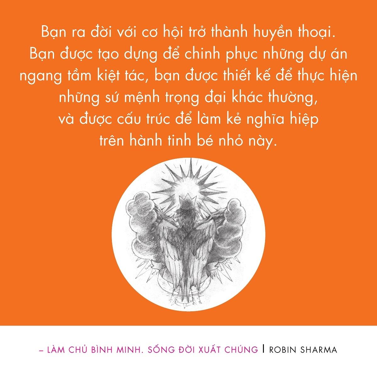Vừa là bản tuyên ngôn cho tài năng bậc thầy, vừa là bí kíp để đạt đến năng suất cấp thiên tài, vừa là người bạn đồng hành cho một cuộc đời sống đẹp, Làm chủ bình minh. Sống đời xuất chúng là một tác phẩm sẽ làm thay đổi cuộc sống của bạn. Mãi mãi.