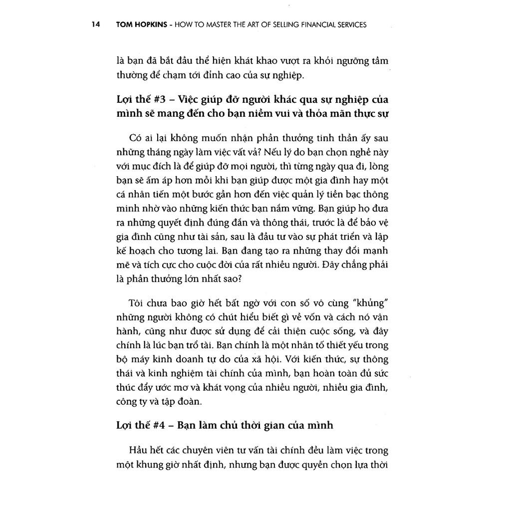 Đây cũng là một cuốn sách kinh điển trong lĩnh vực bán hàng. Để thành công và làm chủ nghệ thuật bán hàng thì bất kỳ một người bán hàng nào cũng cần phải có. Mong rằng bạn sử dụng cuốn sách như một công cụ hữu ích về thông tin, một công cụ dẫn đường, giúp đỡ và truyền cảm hứng cho bạn. Các phương pháp của Tom Hopkins trong “Làm chủ nghệ thuật bán hàng” sẽ giúp bạn làm thế nào để nắm vững được nghệ thuật bán các dịch vụ tài chính hiệu quả và năng suất hơn bao giờ hết! Đôi nét về tác giả: Tom Hopkins được công nhận là huấn luyện viên bán hàng hàng đầu nước Mỹ. Ông đã dạy và truyền cảm hứng cho hàng triệu người, đồng thời đảm nhiệm vai trò tư vấn cho những công ty và tổ chức lỗi lạc nhất trên thế giới, trong đó có không ít công ty hàng đầu trong ngành dịch vụ tài chính.