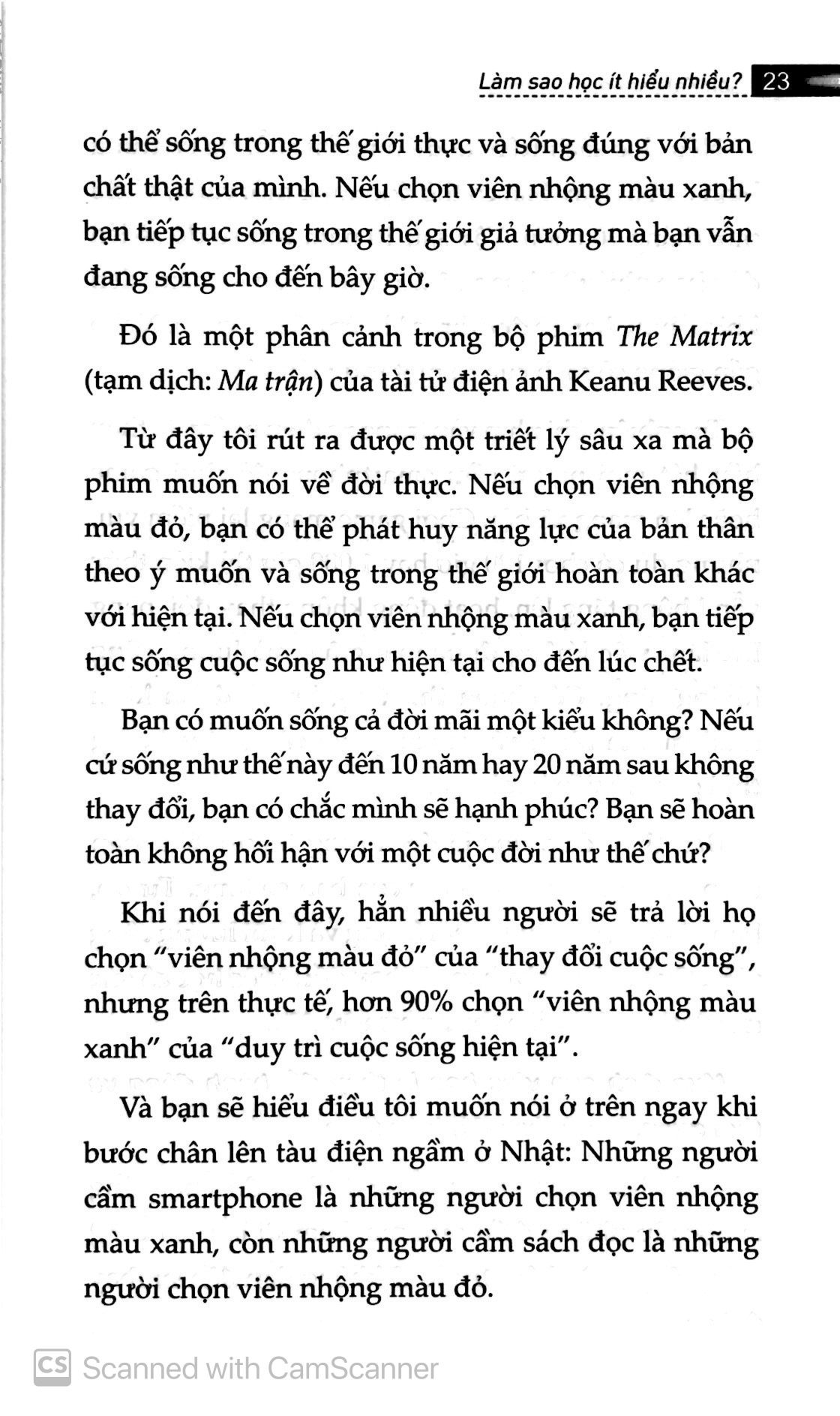 Qua cuốn sách này, bạn sẽ thấy việc học thực ra rất vui vẻ nếu người học biết cách làm sao để học ít hiểu nhiều. Bạn không cần phải có trí thông minh xuất chúng hay bộ nhớ siêu phàm để đạt được mọi mục tiêu học tập mà mình muốn, chỉ cần bạn học được cách học đúng. Hãy thử áp dụng những chỉ dẫn trong cuốn sách này, và bạn sẽ thấy những cánh cửa mới rộng mở trước mắt mình.