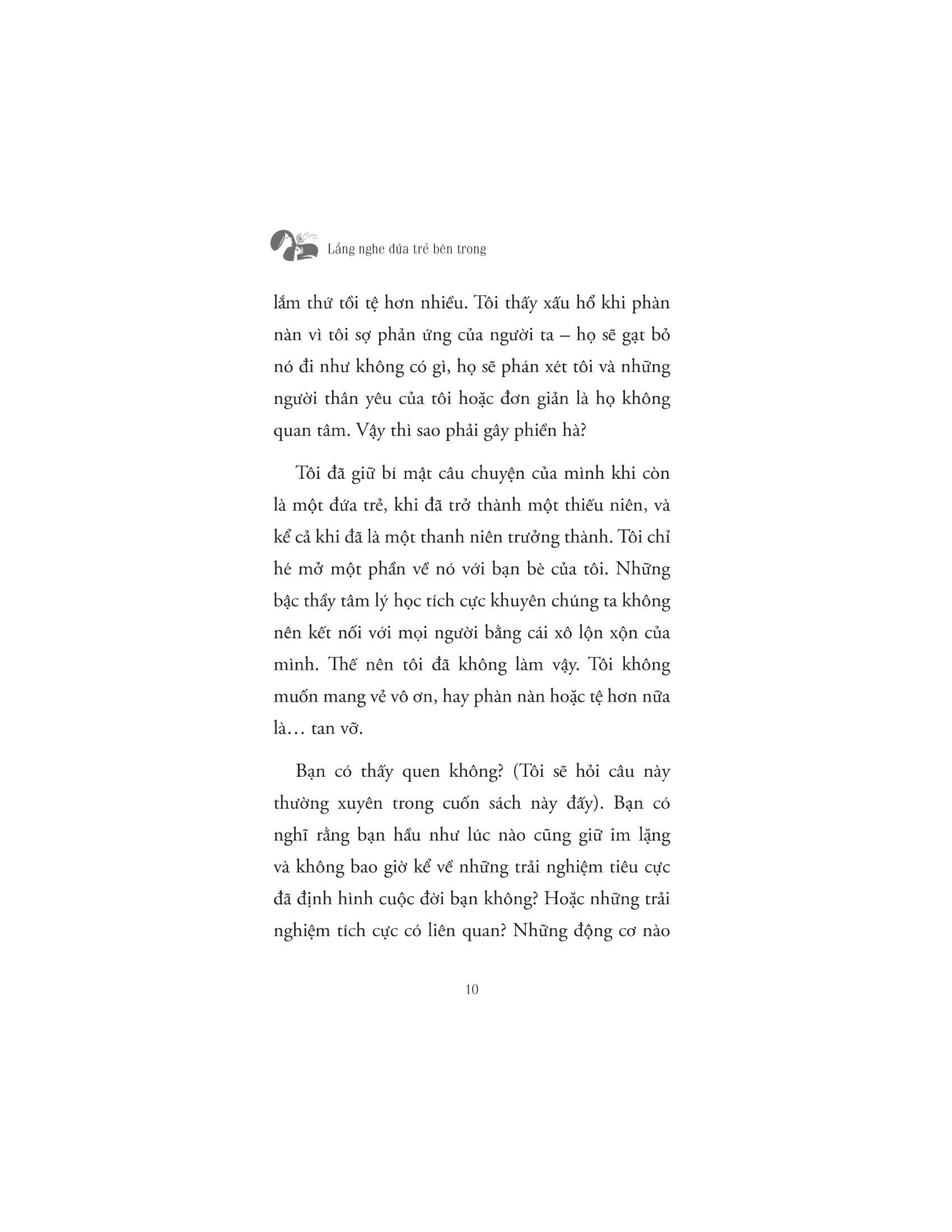 Lắng Nghe Đứa Trẻ Bên Trong Thấu hiểu cảm xúc để yêu thương, chữa lành tổn thương để hạnh phúc Sự trưởng thành không phải là một điểm đến mà là một hành trình. Hành trình khám phá bản th...