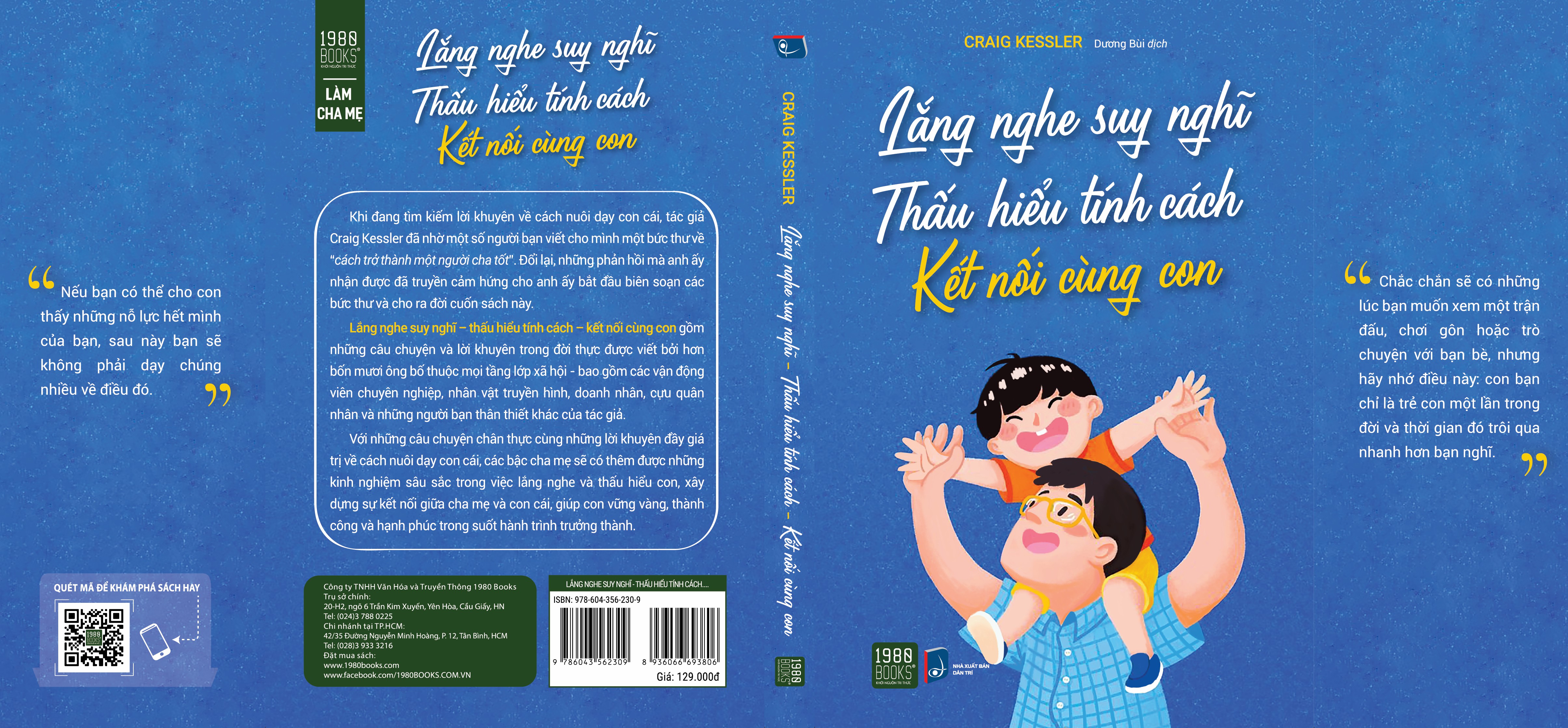 - KẾT NỐI CÙNG CON Khi đang tìm kiếm lời khuyên về cách nuôi dạy con cái, tác giả Craig Kessler đã nhờ một số người bạn viết cho mình một bức thư với chủ đề “cách trở thành một người cha tốt”. Những bức thư sau đó mà anh ấy nhận được đã truyền cảm hứng cho anh ấy viết nên cuốn sách tuyệt vời này. “Lắng nghe suy nghĩ – thấu hiểu tính cách – kết nối cùng con” gồm những câu chuyện và lời khuyên ngoài đời thực được viết bởi hơn 40 ông bố thuộc mọi tầng lớp xã hội – bao gồm: Các vận động viên chuyên nghiệp, nhân vật truyền hình, doanh nhân thành đạt, cựu quân nhân và những người bạn thân thiết khác của tác giả. Nội dung sách thể hiện: