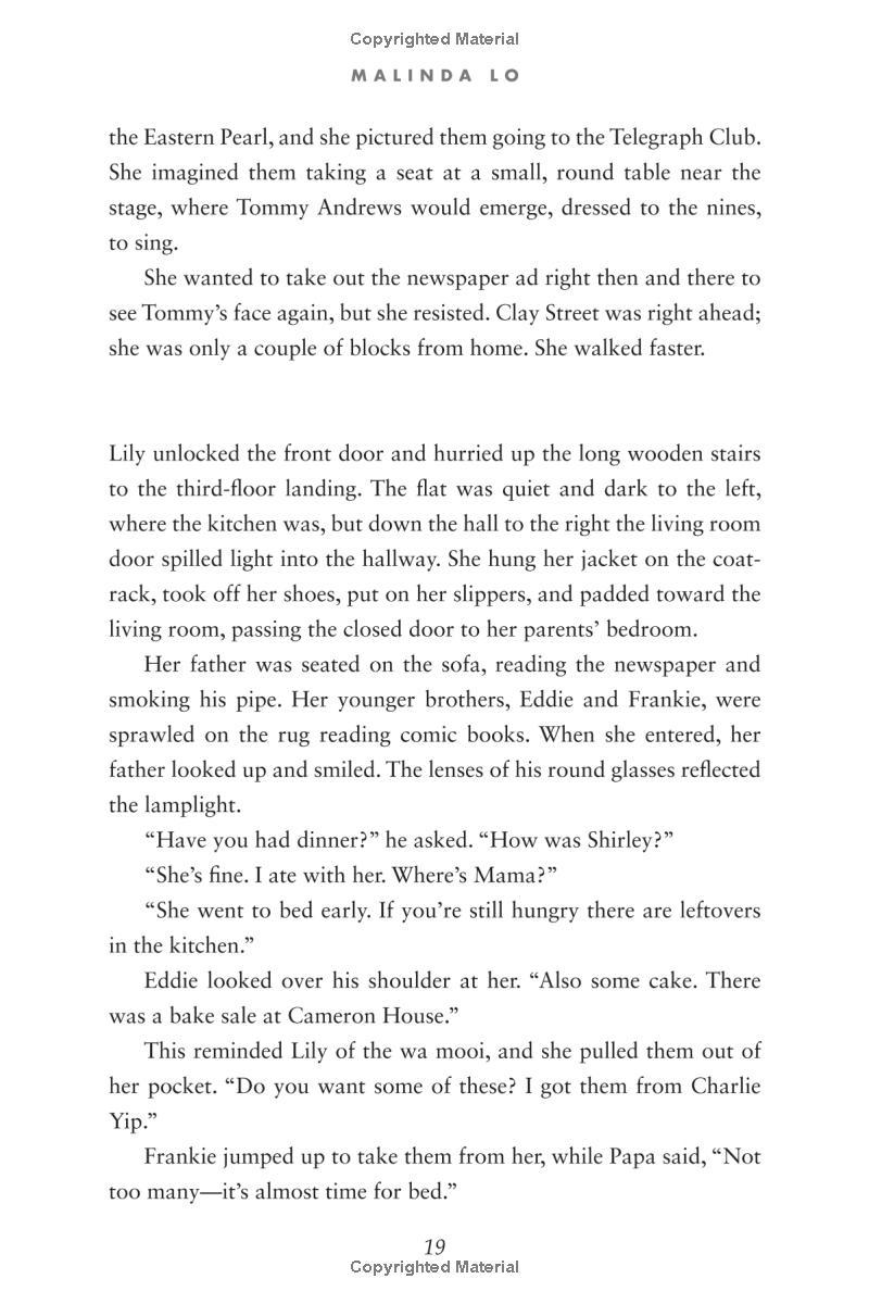 Seventeen-year-old Lily Hu can't remember exactly when the feeling took root—that desire to look, to move closer, to touch. Whenever it started growing, it definitely bloomed the moment she and Kathleen Miller walked under the flashing neon sign of a lesbian bar called the Telegraph Club. Suddenly everything seemed possible.