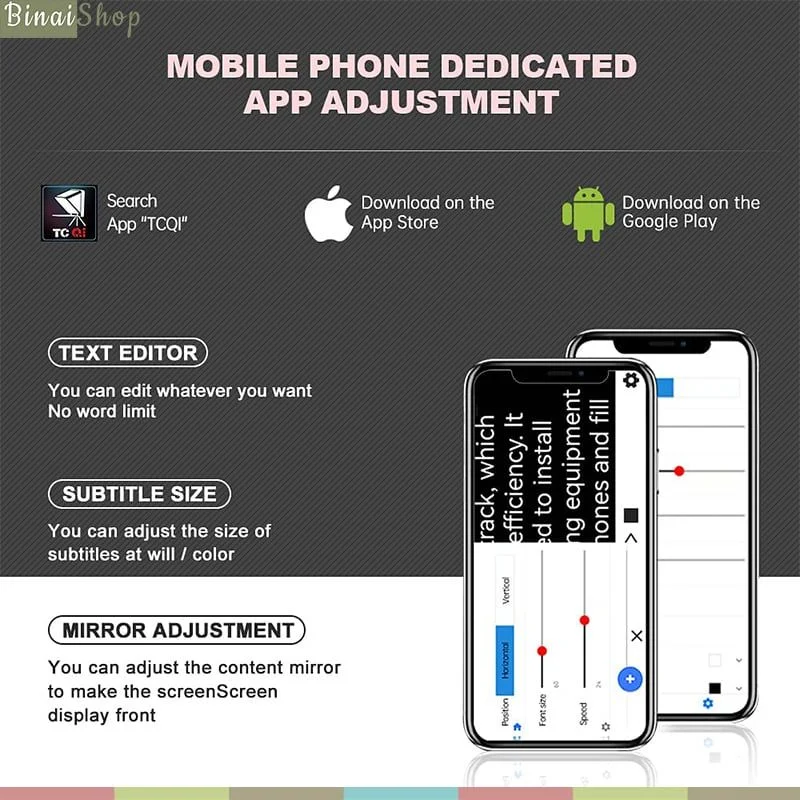 - Thiết bị để chạy chữ là smartphone, tablet có kích thước nhỏ hơn 8 inchs( có thể gập lại để vừa điện thoại trên TC7S) sẽ được cố định trên mặt phẳng với miếng nano tự dính vô cùng tiện lợi, nhanh gọn.