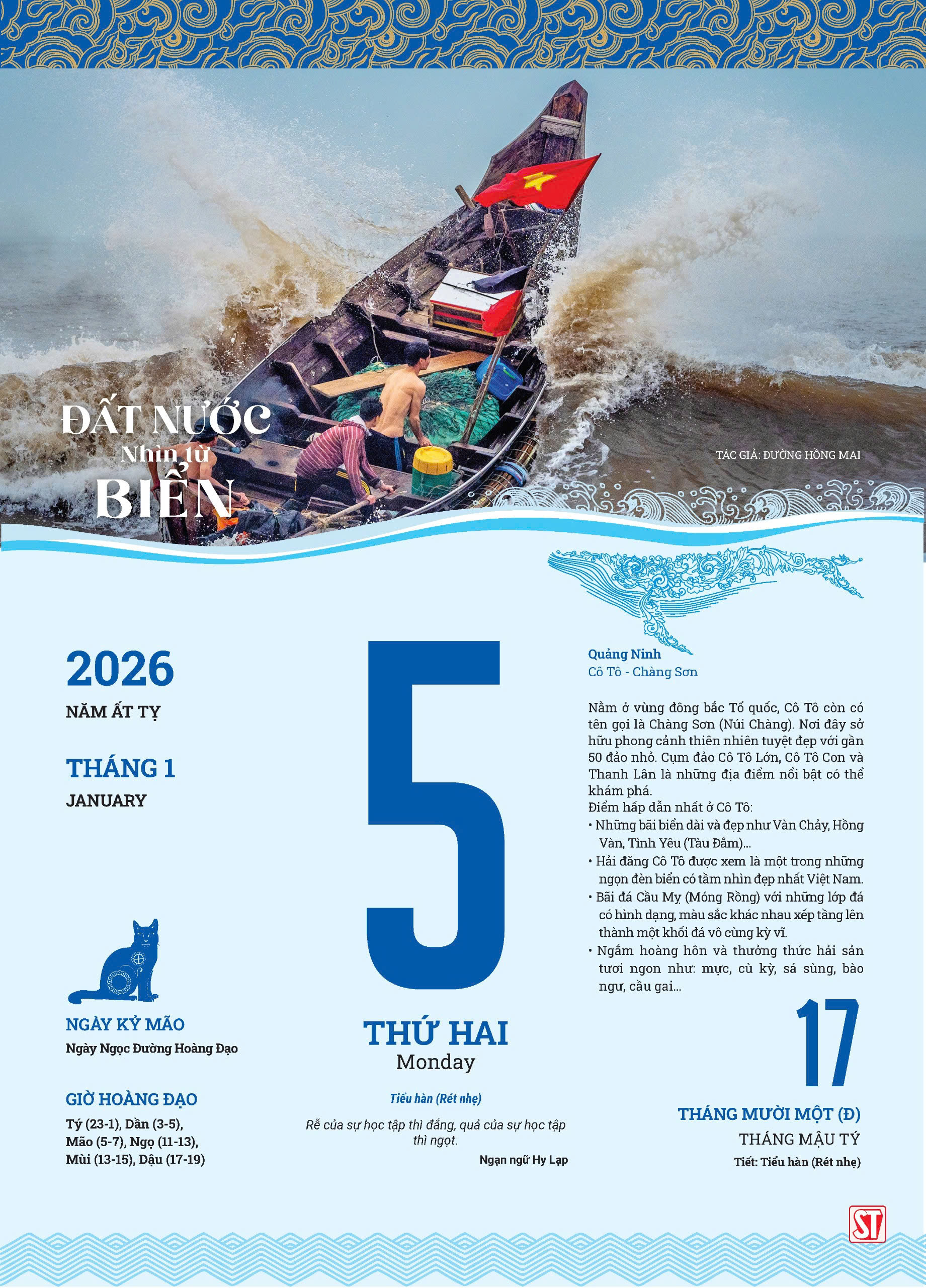 Năm 2026 – năm của đổi mới, phát triển và vươn mình ra biển lớn, bộ Lịch “Đất Nước Nhìn Từ Biển” ra đời như một lời tri ân và khẳng định tinh thần bất