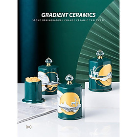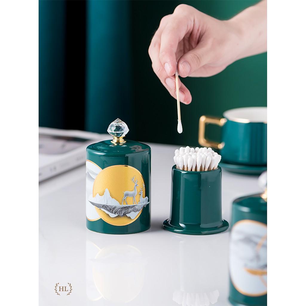 ✨Lọ Đựng Tăm Xanh Sứ Hoa Văn Hươu Cao Cấp Vàng Kim 2022 | Hũ sứ có nắp đậy đính đá size To