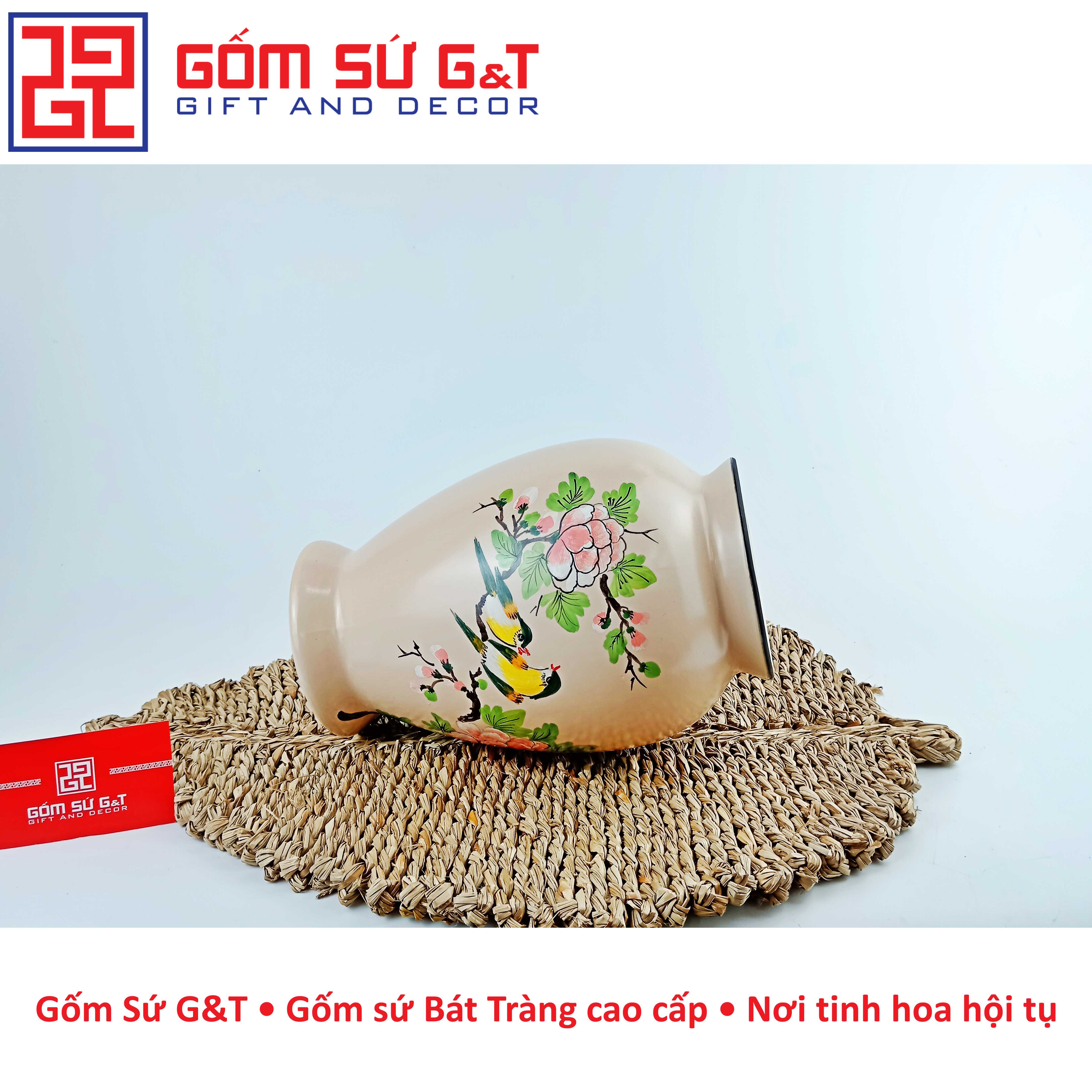 Bình hút tài lộc phong thủy họa tiết tứ cảnh (bốn mùa ) vẽ vàng, gốm sứ Bát Tràng cao cấp (H26 x D24cm) - Trong quan niệm phong thủy, bình hút tài lộc phong
