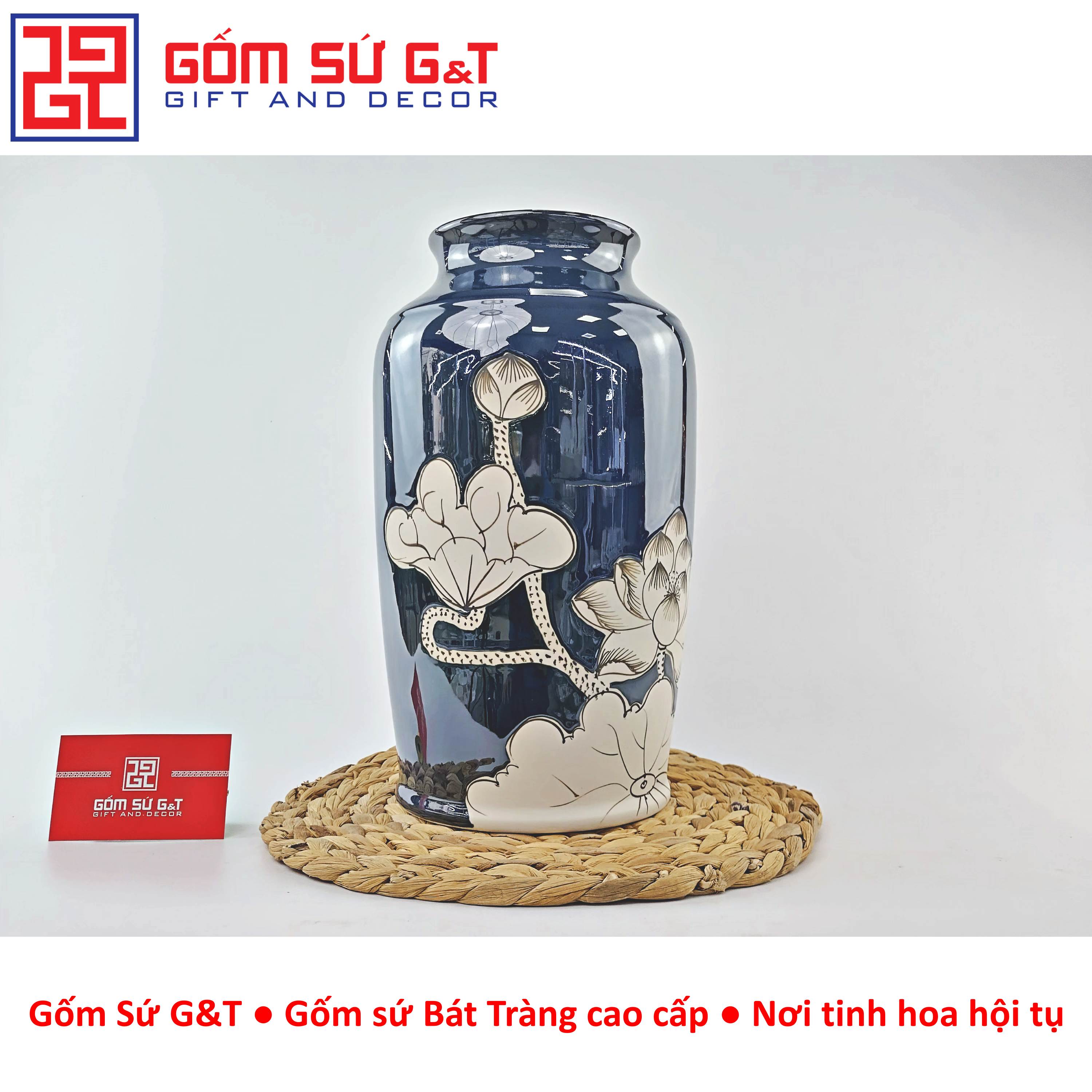 ✨Lọ hoa men hỏa biến dáng thạp vẽ sen Gốm Sứ G&T