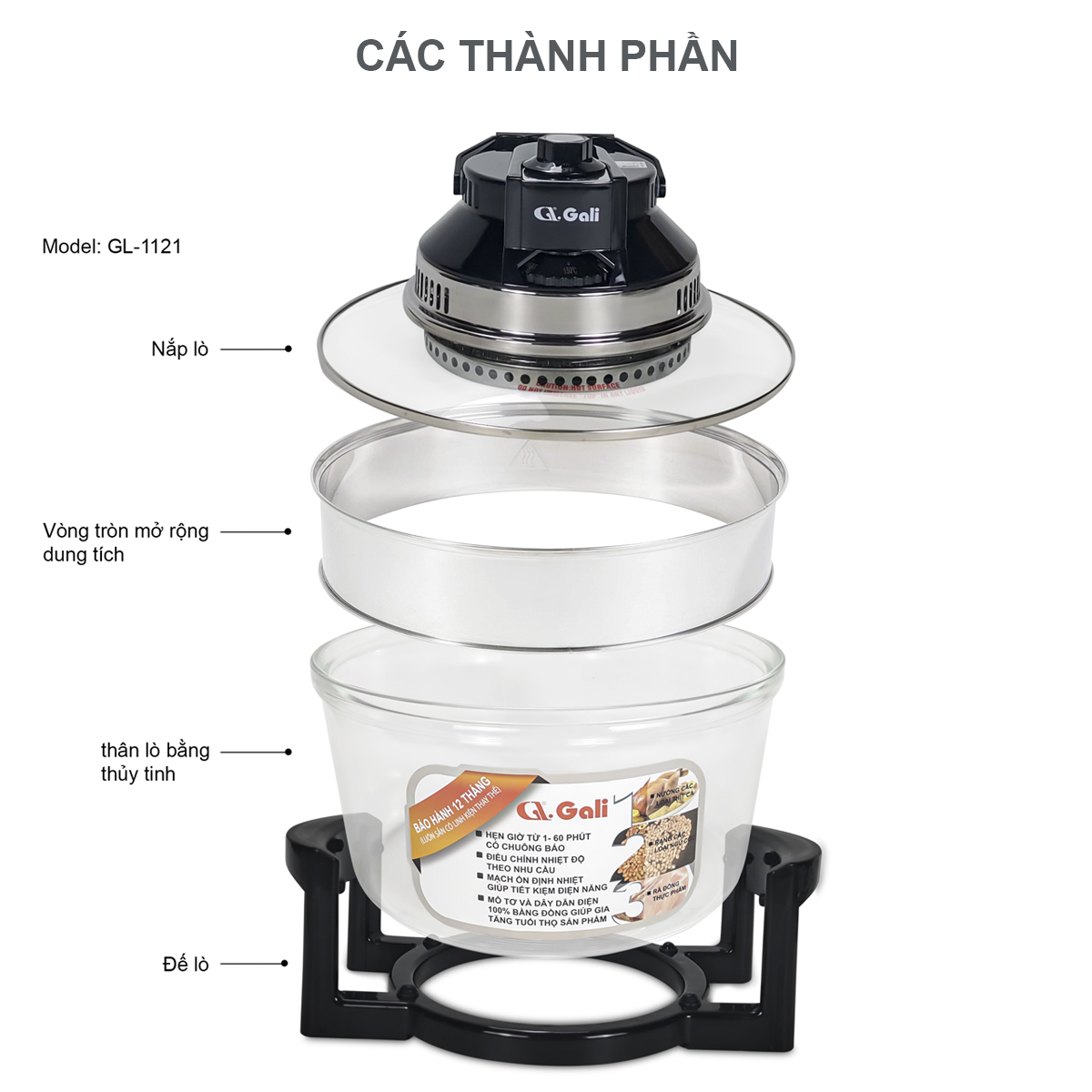 Lò nướng thủy tinh Gali GL-1121 - Hàng chính hãng