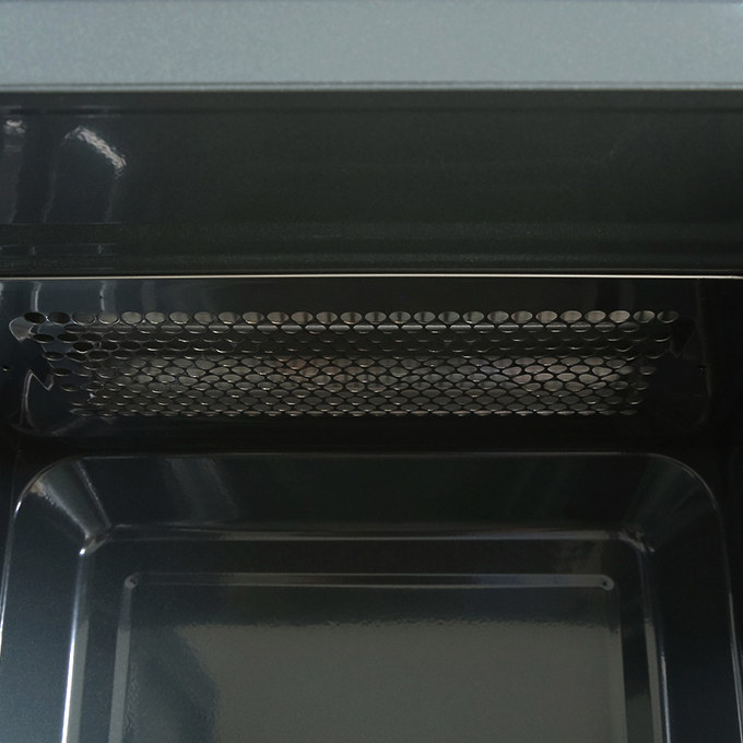 Lò vi sóng có nướng với khoang lò bằng thép không gỉ, cửa kính dáng bóng giúp nấu nướng thực phẩm an toàn, dễ lau chùi đảm bảo vệ sinh. Đĩa xoay tròn và giá nướng cho món ăn chín đều, ngon hơn, lò có đèn chiếu sáng giúp bạn dễ quan sát quá trình thức ăn được chế biến khi lò đang hoạt động.