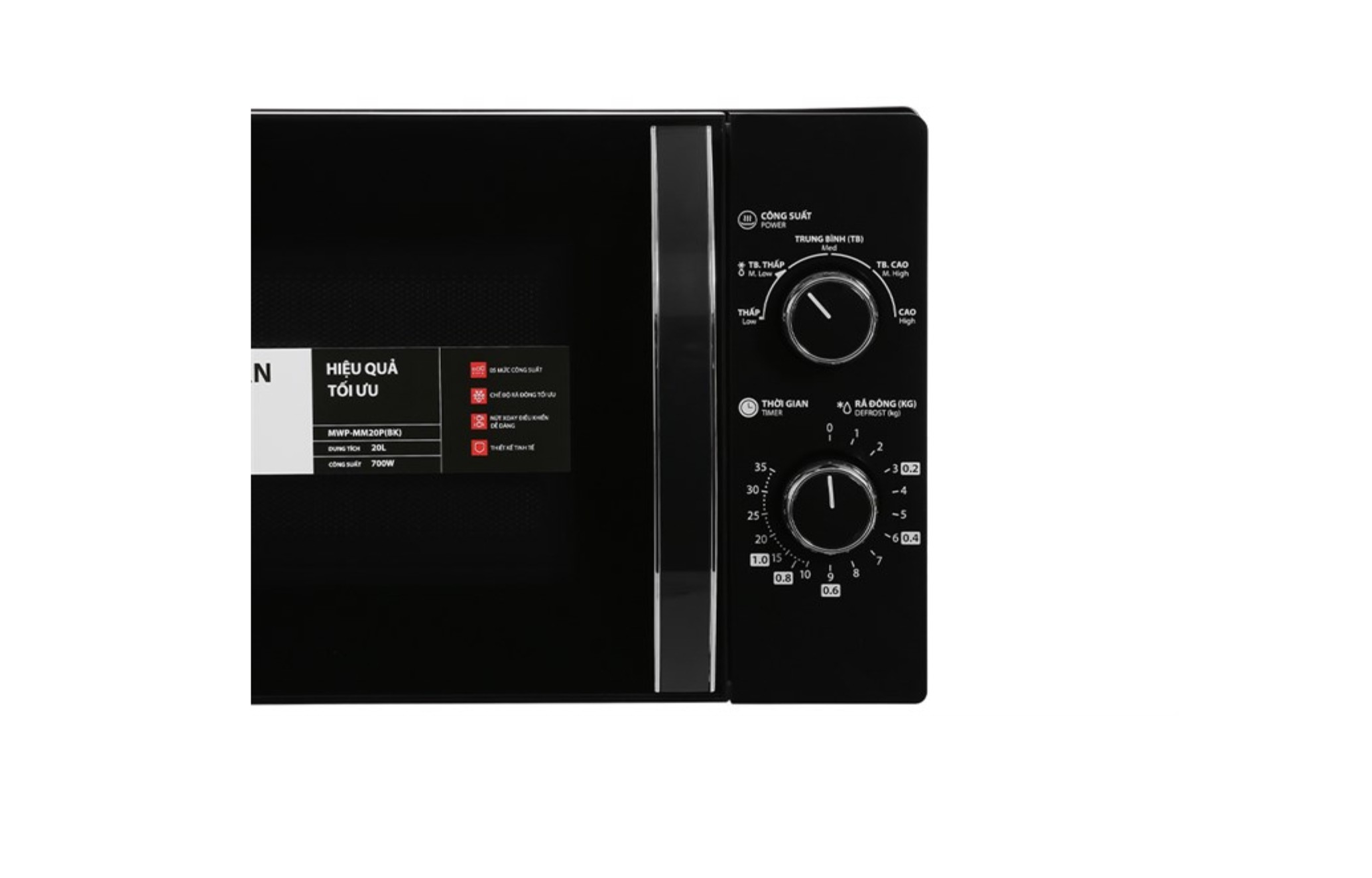Tính năng nổi bật : – Bảng điều khiển cơ học dễ dàng sử dụng – Thiết kế sang trọng hiện đại. THÔNG SỐ KỸ THUẬT Điện Áp 220v-50hz Đường Kính Đĩa 24,4cm Trọng lượng khoảng 10,3 kg Công Suất Đầu Ra (vi sóng) 700W Công Suất Đầu Vào(vi sóng) 1100W Kích thước bề ngoài (cm) 47 x 38 x 28.5 Dung Tích Lò Vi Sóng 20L