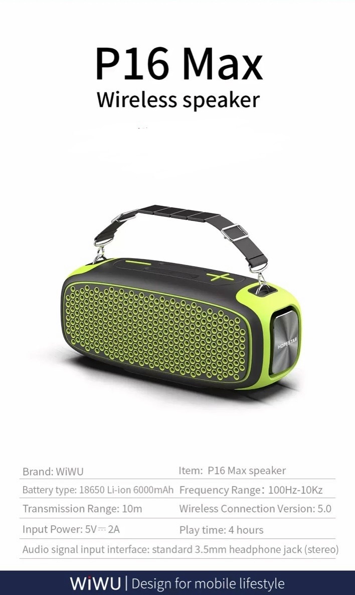 ✨Loa Không Dây Wiwu P16 Max Dành Cho Các Thiết Bị Có Bletooth Có Mích Hát Âm Thanh Cao Cấp, Chống Nước - Hàng Chính Hãng