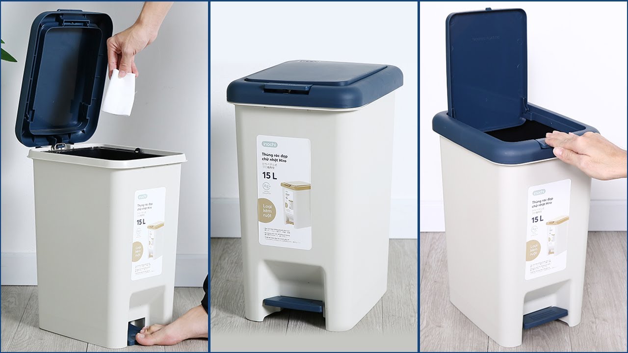 Lồng túi rác đúng cách I THÙNG RÁC ĐẠP CHỮ NHẬT HIRO I Inochi chính hãng