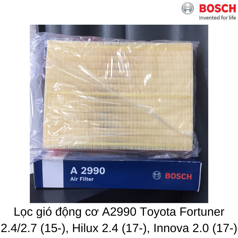 ✨Lọc Gió Động Cơ BOSCH A2990 cho xe Toyota Fortuner 2.4/2.7 (15-), Hilux 2.4 (17-), Innova 2.0 (17-), Made in China