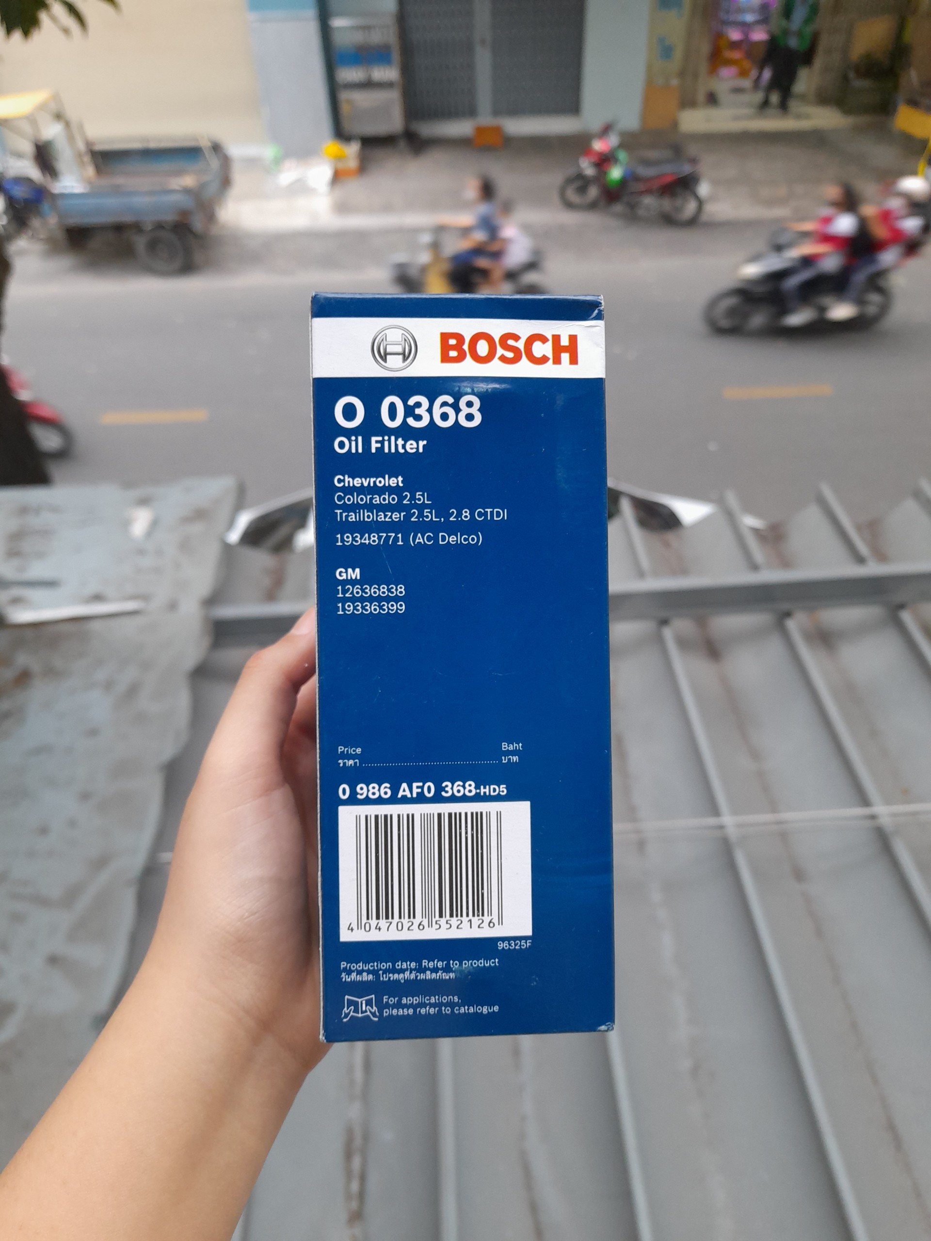 Lọc Nhớt Động Cơ (Lỗi Lọc Giấy) BOSCH O0368|Dành Cho CHEVROLET Colarodo 2.5 ( 14-17); Colorado 2.8 (17-); Trailblazer 2.5/2.8 (15 -)