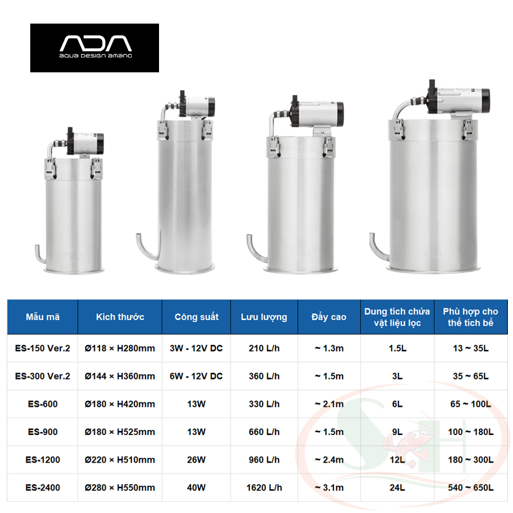 THÔNG SỐ KỸ THUẬT LỌC THÙNG ADA SUPER JET FILTER VER.2 ES 150 / 300 / 600 / 900 / 1200 / 2400: