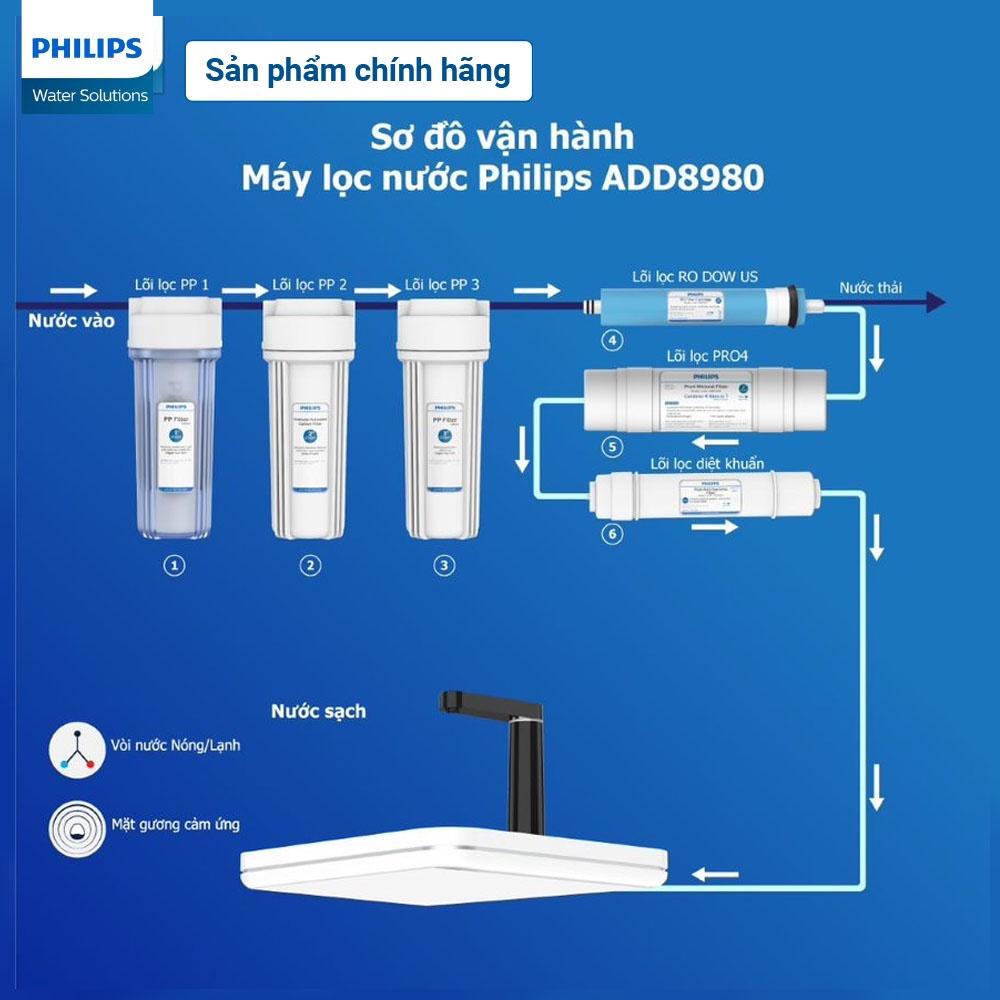 Máy lọc nước RO 6 lõi Philips ADD8980: Chức năng an toàn cho trẻ, chế độ nóng lạnh # Điện máy A Hò