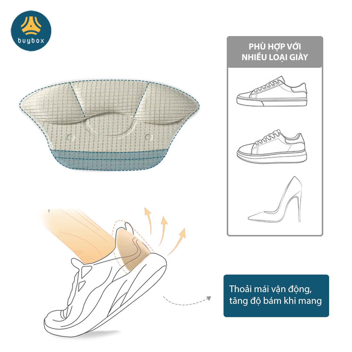 CÔNG DỤNG NỔI BẬT Chống trầy gót sau và giảm nửa size giày. Giúp chống tuột gót, chống nhấc gót, chuyên dùng cho giày thể thao, sneaker. Có thể sử dụng cho giày thể thao