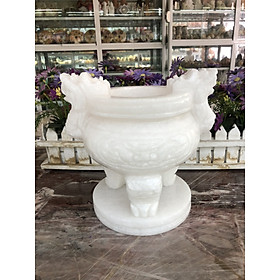 ✨Lư hương, bát hương, bát nhang chạm rồng trang trí bàn thờ, mộ đá cẩm thạch trắng - Cao 20 cm