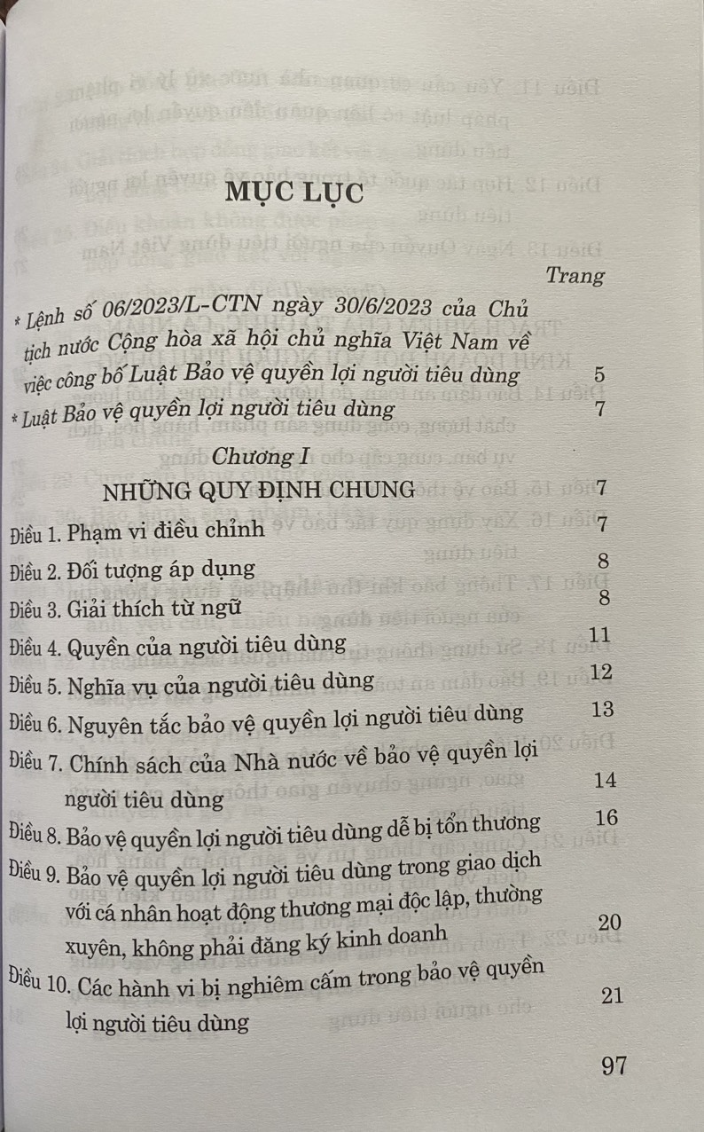 Luật Bảo vệ quyền lợi người tiêu dùng được Quốc hội khóa XII, kỳ họp thứ 8 thông qua ngày 17/11/2010, có hiệu lực thi hành từ ngày 01/7/2011. Hơn 10 năm thực thi các quy định của Luật đã góp phần thay đổi mạnh mẽ công tác bảo vệ quyền lợi người tiêu dùng, đồng thời kiến tạo các khuôn khổ pháp lý, nền tảng cơ bản vững chắc để tiếp tục tạo dựng sự phát triển các hoạt động bảo vệ quyền lợi người tiêu dùng tại Việt Nam. Nhằm đáp ứng với sự thay đổi của bối cảnh kinh tế - xã hội, xu hướng hội nhập quốc tế và kịp thời thể chế hóa quan điểm, chủ trương của Đảng tại Đại hội đại biểu toàn quốc lần thứ XIII, trên cơ sở nhận diện những hạn chế, bất cập, sau hơn 10 năm thực thi Luật, ngày 20/6/2023, Quốc hội khóa XV, kỳ họp thứ 5 đã thông qua Luật Bảo vệ quyền lợi người tiêu dùng năm 2023. Luật có hiệu lực thi hành từ ngày 01/7/2024, quy định về nguyên tắc, chính sách bảo vệ quyền lợi người tiêu dùng; quyền và nghĩa vụ của người tiêu dùng; trách nhiệm của tổ chức, cá nhân kinh doanh đối với người tiêu dùng; hoạt động bảo vệ quyền lợi người tiêu dùng của cơ quan, tổ chức; giải quyết tranh chấp giữa người tiêu dùng và tổ chức, cá nhân kinh doanh; quản lý nhà nước về bảo vệ quyền lợi người tiêu dùng.