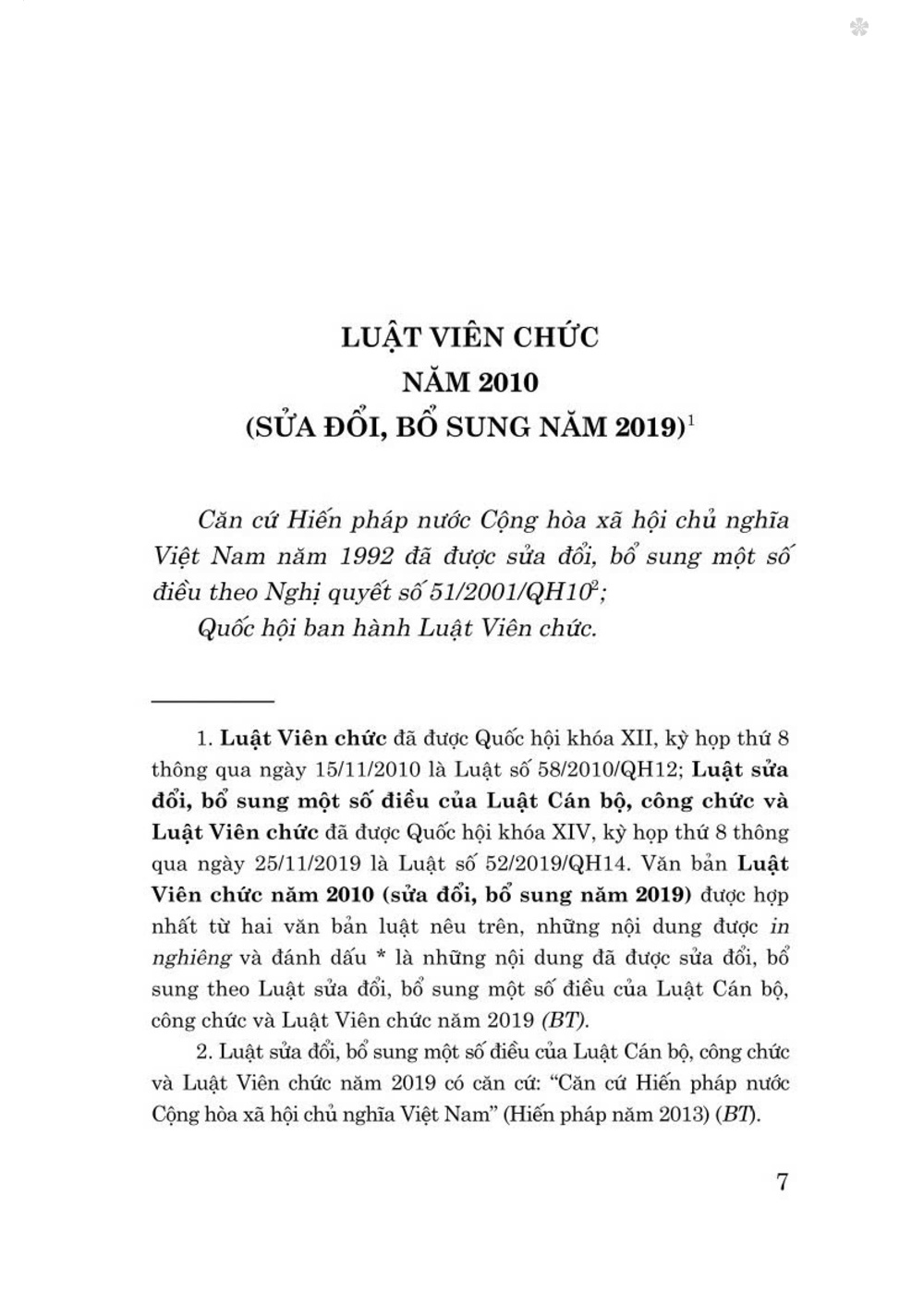 ✨Luật viên chức năm 2010 (sửa đổi, bổ sung năm 2019) bản in 2024