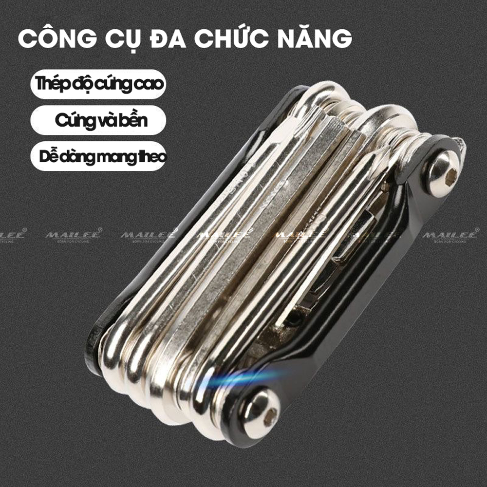 Lục giác sửa chữa xe đạp 11 trong 1, bao gồm các dụng cụ đủ loại như đinh vít, lục giác, cắt xích và nạy lốp Bộ dụng cụ xe đạp này có 11 chức năng trong 1 bộ;Các chìa khóa được làm từ thép chất lư...