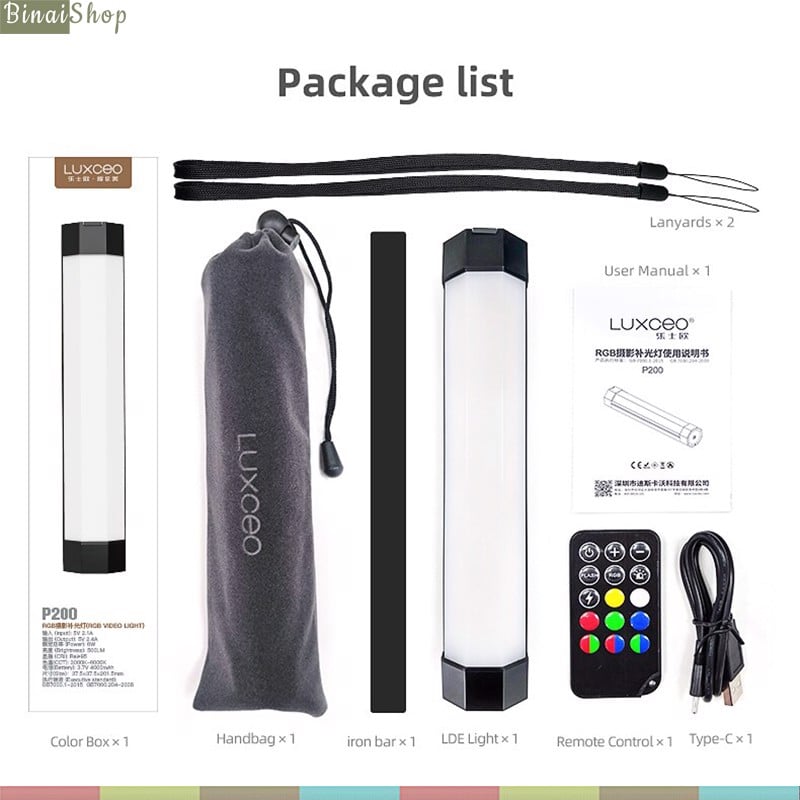 Luxceo P200RGB là đèn Led mini, dải nhiệt rộng từ 3000-6000K, chống nước chuẩn IP67, dài 20cm sử dùng cho nhiếp ảnh quay chụp, sản phẩm ,vlog, model tạo hiệu ứng màu, làm đèn backgroud