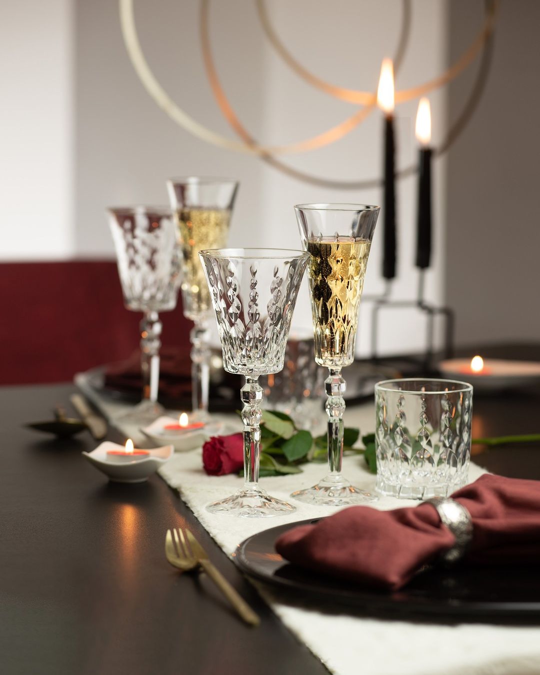 Một trong những vật dụng không thể thiếu trên mỗi bàn tiệc đó là những ly rượu vang đầy quyến rũ. Ánh lung linh của rượu vang trong những chiếc ly thủy tinh pha lê