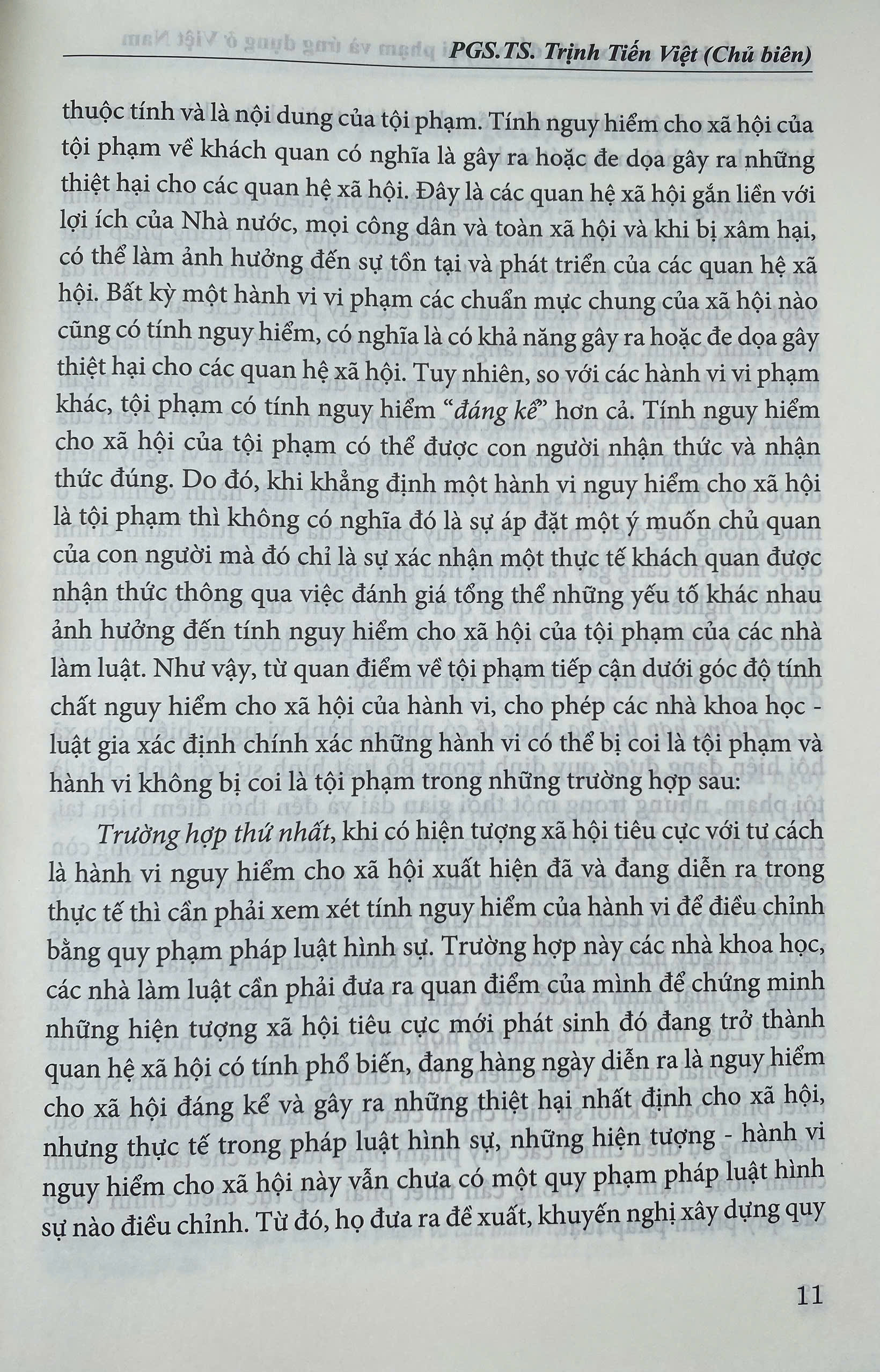 Chương 1: Giới thiệu những quan điểm tiếp cận khác nhau về tội phạm như: Quan điểm về tội phạm dưới góc độ hành vi nguy hiểm cho xã hội; Quan điểm về tội phạm dưới góc độ tính trái pháp luật hình sự của tội phạm; Quan điểm về tội phạm dưới góc độ các quan hệ xã hội (khách thể) cần phải bảo vệ bằng pháp luật hình sự; Quan điểm về tội phạm dưới góc độ chủ thể của tội phạm; Quan điểm về tội phạm dưới góc độ lỗi của tội phạm; Quan điểm về tội phạm dưới góc độ hình phạt đối với tội phạm.