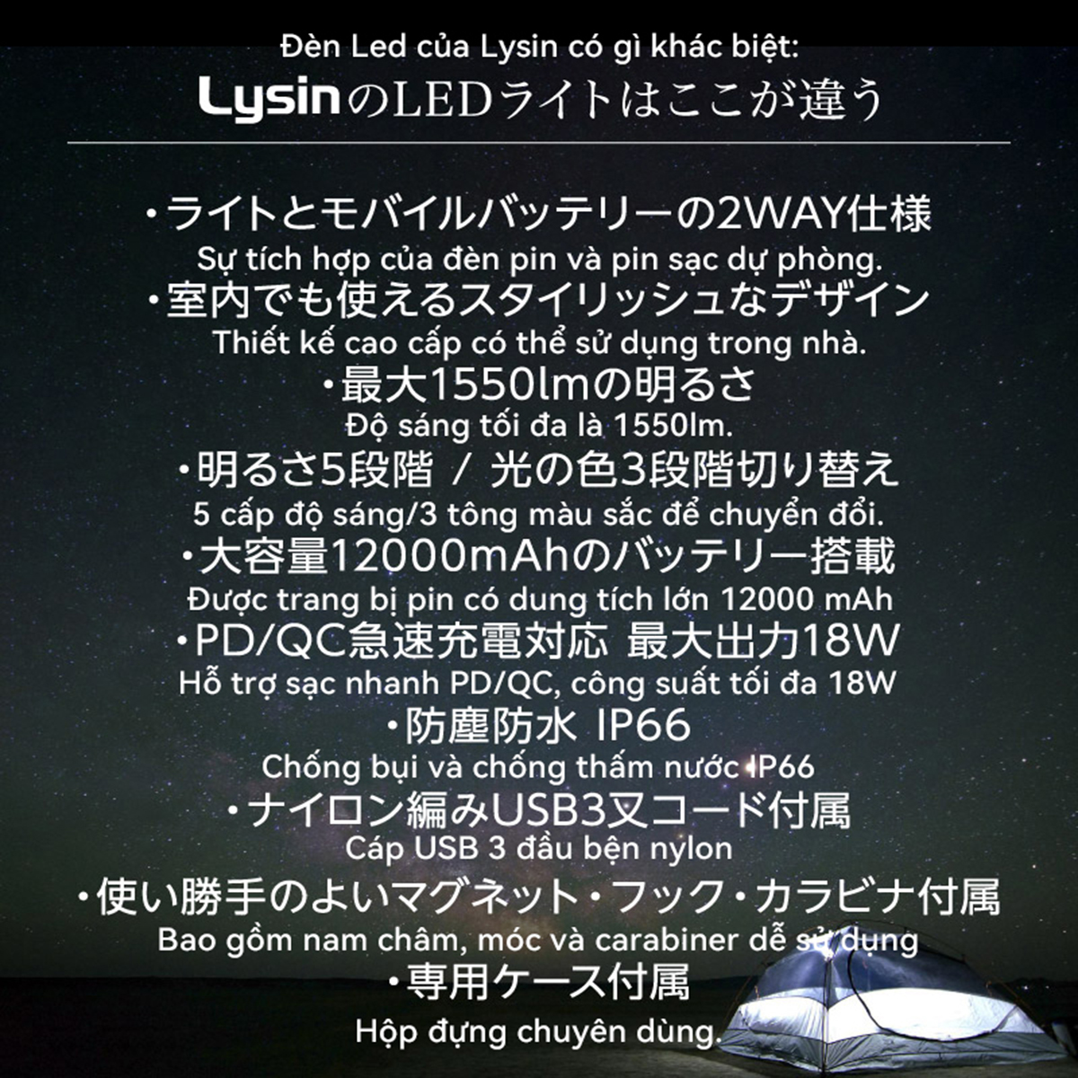 ✨Lysin - đèn led chiếu sáng cầm tay sạc dự phòng 12000mah,cắm trại du lịch,dã ngoại, camping,picnic ngoài trời tiện lợi đa năng chống thấm nước,chống bụi bẩn.