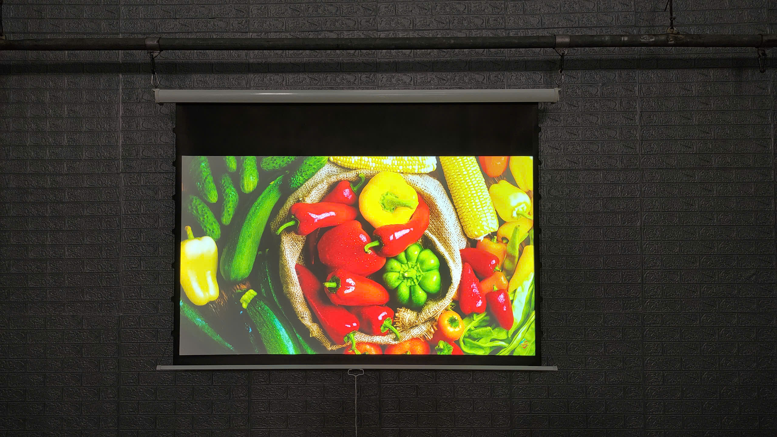MÀN CHIẾU TREO TƯỜNG KÉO TAY CĂNG DÂY TAB TENSION EXZEN CHÍNH HÃNG KOREA (80” – 150”) – HỖ TRỢ 4K/8K, SIÊU PHẲNG, CAO CẤP Mặt vải siêu phẳng, không nhăn – Hình ảnh sắc