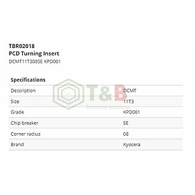 Mảnh dao tiện kim cương PCD Kyocera Model DCMT11T308SE KPD001 Hàng Chính Hãng Chất Lượng Uy Tín