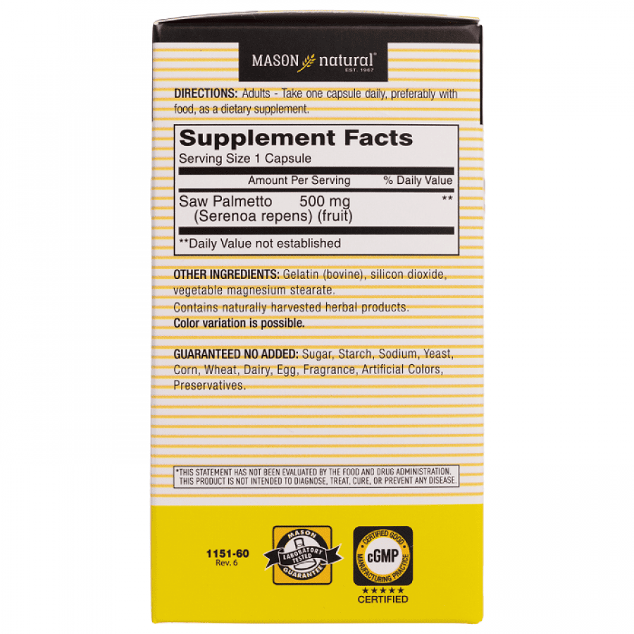 ✨Mason Natural Saw Palmetto 500mg – Hỗ trợ điều trị phì đại tiền liệt tuyến hộp 60 viên