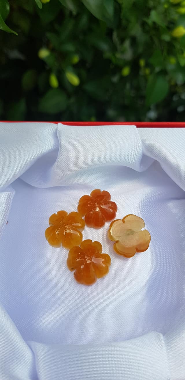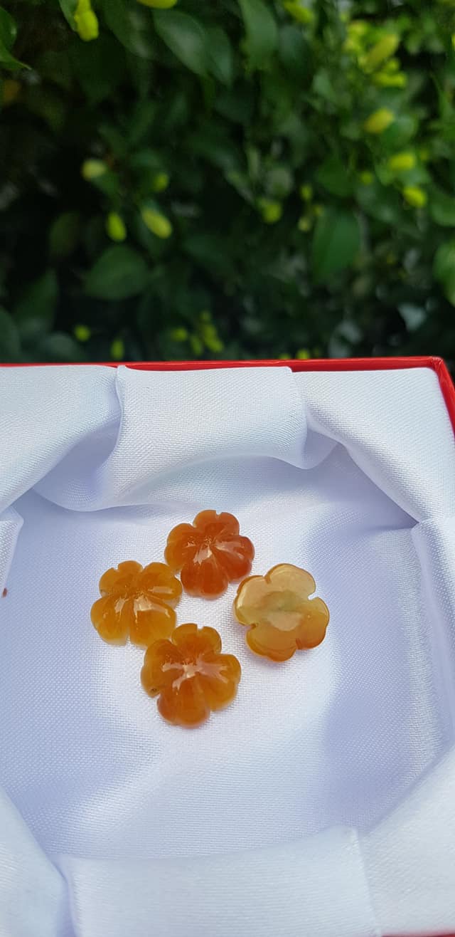 Mặt Bông Hoa cỏ 4 lá màu vàng cam nữ phối vòng tay,làm mặt nhẫn Chất liệu đá cẩm thạch size hạt 14mm x dầy 6mm Nữ về phối với vòng tay của mình đeo