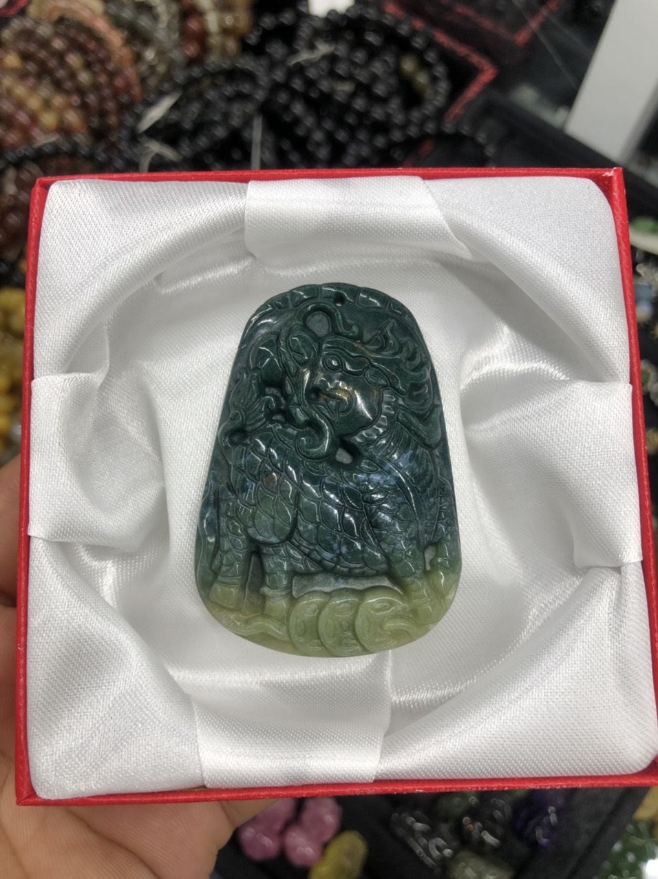 🐉Mặt dây chuyền băng ngọc thủy tảo chạm khắc rồng