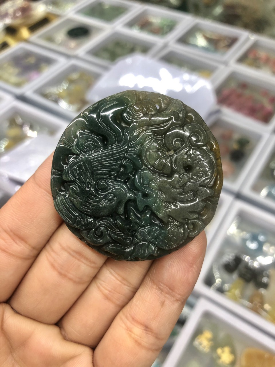 Mặt dây chuyền ngọc phỷ thúy trạm Long Phụng sum vầy | TahiGems - Tahi Phạm.