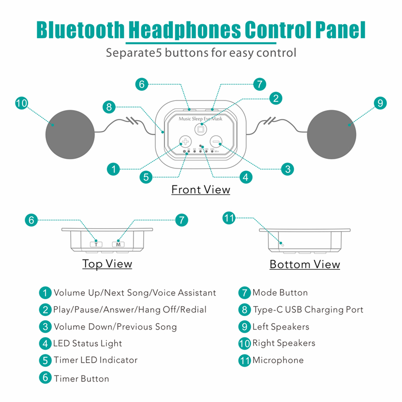 Chức năng: Bài hát trước, bài hát tiếp theo, tăng âm lượng, giảm âm lượng, phát, tạm dừng, trả lời cuộc gọi, thực hiện cuộc gọi, kích hoạt trợ lý giọng nói thông minh Voice, chức năng hẹn giờ