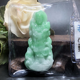 Mặt Phật Bà đứng Cẩm Thạch xanh trắng lí - Chất liệu: Ngọc Cẩm Thạch tự nhiên. - Màu sắc: Xanh lí phớt trắng - Kích thước: ngang 49mm, cao 23mm, dày 4mmx8mm - Mã kiểm định: 86691 - Tiêu chuẩn