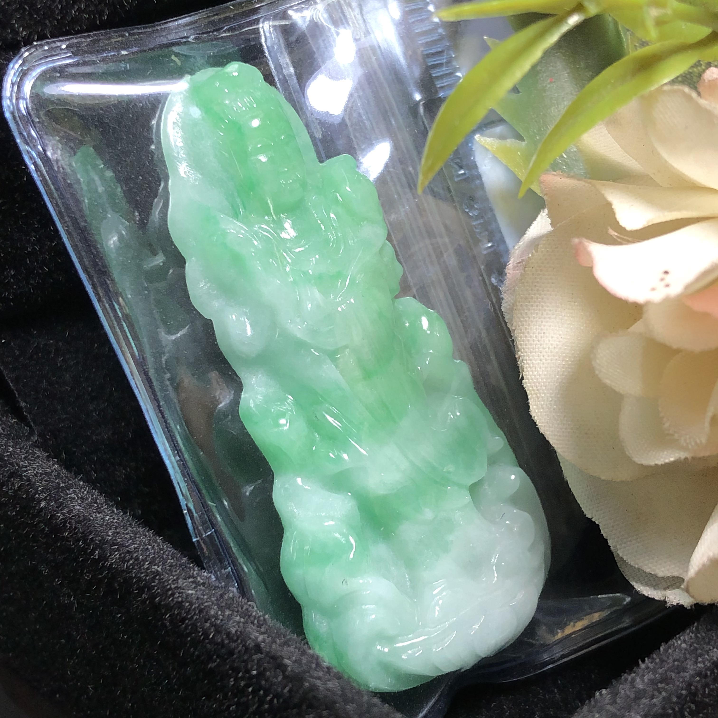 ✨Mặt Phật Bà đứng Cẩm Thạch xanh trắng lí