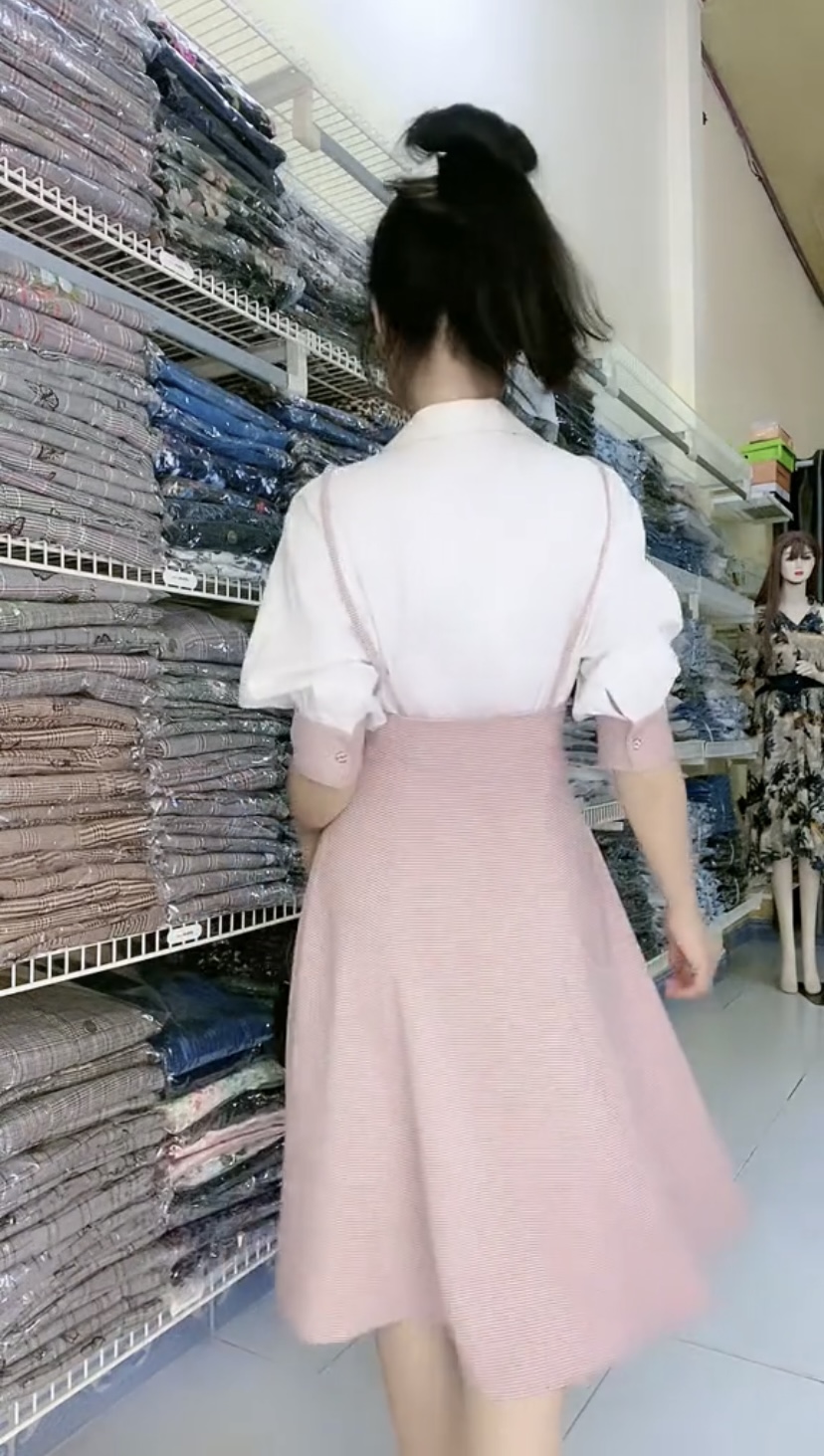 Đầm eo cao giả set áo sơ vin với chân váy, kiểu tôn eo, chất liệu xuất sắc Mã: DZEA001 Màu: Hồng + Đen Chất liệu: Polyester Số đo vòng1/vòng2(cm): 89-giãn nhẹ/72-giãn nhẹ