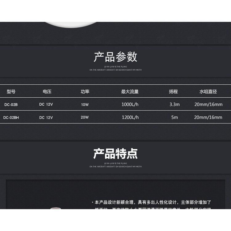 Máy bơm chìm bể cá 12V-10W/20W - máy bơm chìm không chổi than - Bơm hồ nước mặn, hồ thủy sinh