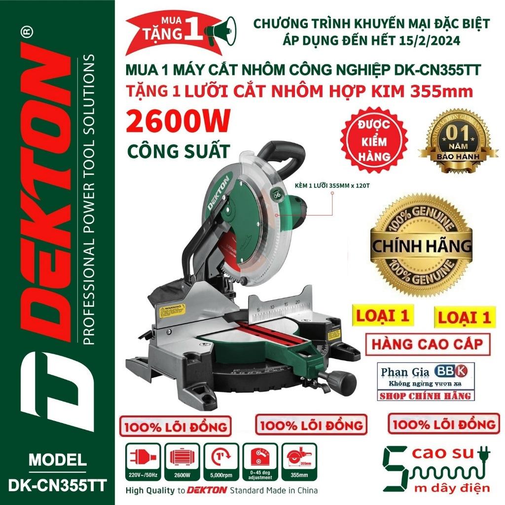 • Máy cắt nhôm DEKTON 355mm 2600W, Chạy trực tiếp- Tặng lưỡi cắt nhôm 355mm được thiết kế theo công nghệ Nhật Bản,đáp ứng đầy đủ những yêu cầu về kĩ thuật cũng như độ an toàn khi hoạt động.