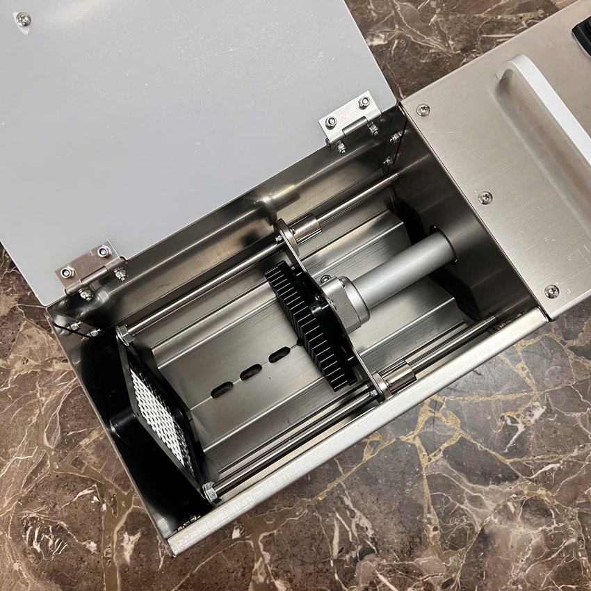 - Máy cắt rau củ Septree SL-12 thiết kế thay lắp khuôn dao dễ dàng, các khuôn ép sau khi được tháo rời có thể xịt rửa trực tiếp dưới vòi nước, loại bỏ hết các nguyên liệu thừa bám trên khuôn, người dùng không nên sử dụng nước rửa chén hay hóa chất vì sẽ làm khuôn dao inox bị ăn mòn, oxy hóa. Phần thân máy chỉ cần dùng khăn ẩm lau khô và loại bỏ nguyên liệu thừa