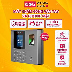 ✨Máy Chấm Công Quét Vân Tay Và Nhận Dạng Khuôn Mặt DELI Mẫu Mới - Hàng Chính Hãng - Thiết Bị Văn Phòng Màn Mình LCD 2.4" Có Tiếng Việt ES161