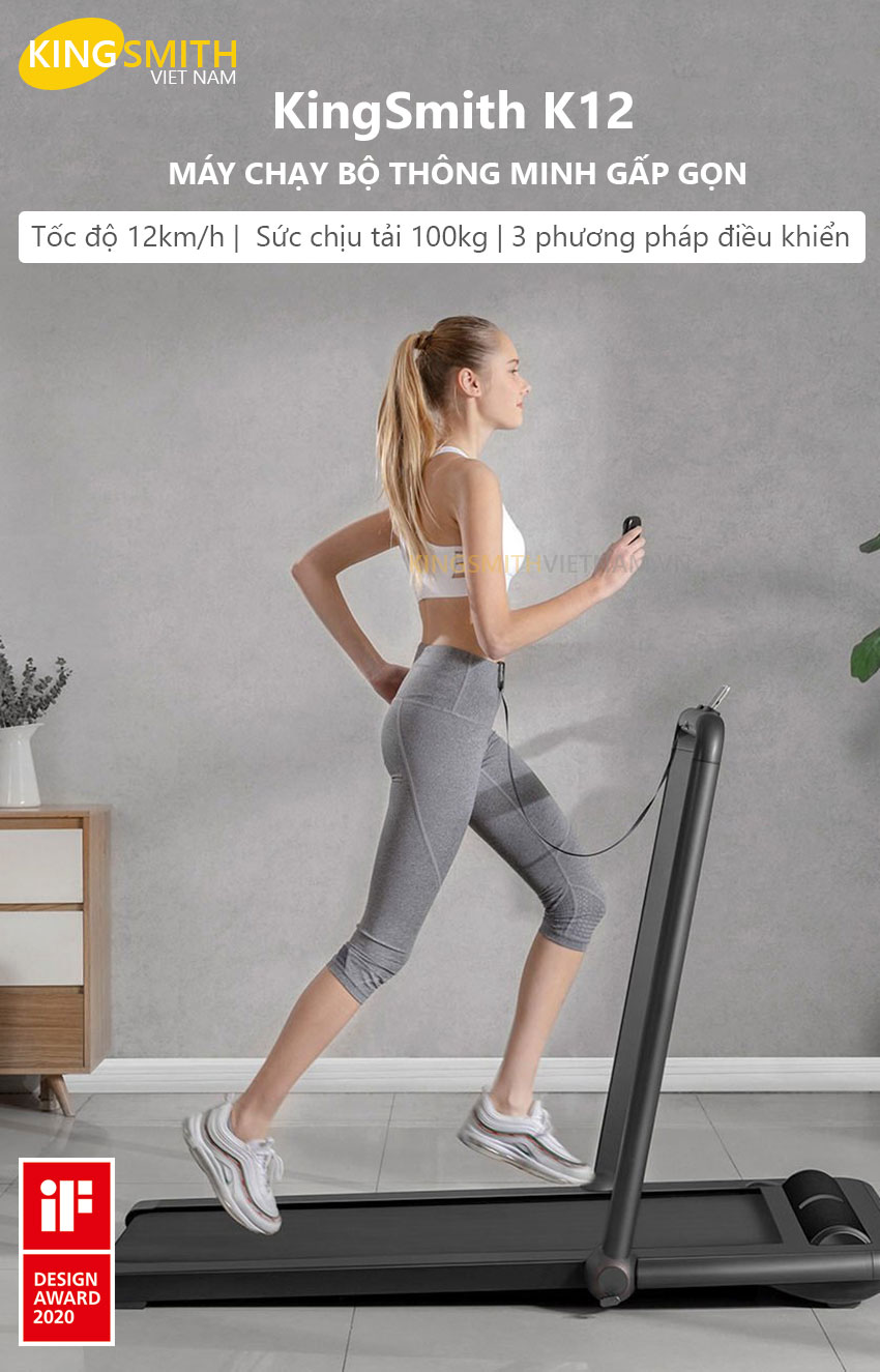 Sức khỏe là một trong những tài sản quan trọng nhất của con người. Vì vậy, để có sức khỏe tốt thì ngoài chế độ dinh dưỡng sinh hoạt điều độ thì bạn cần phải tập luyện thể dục thể thao mỗi ngày. Máy Chạy Bộ Thông Minh KingSmith K12 giúp bạn vận động mỗi ngày, bất cứ thời gian nào. Đặc biệt đối với những người bận rộn, những người làm công việc văn phòng, ít có thời gian đến phòng tập thì máy chạy bộ là lựa chọn không thể thiếu dành cho bạn.