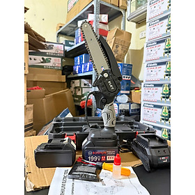 -Máy cưa xích pin cầm tay, cưa mini dùng pin BOSHUN 199V pin 10cell lam xích 6inch cưa gỗ siêu khỏe bảo hành 12 tháng