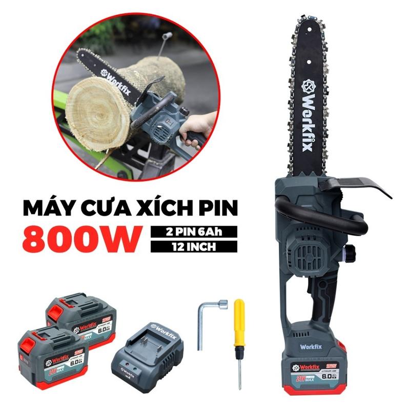 Cưa Xích WORKFIX 12in Dùng Pin Cao Cấp, Bơm Nhớt Tự Động, Mô Tơ Lõi Đồng, Không Chổi Than